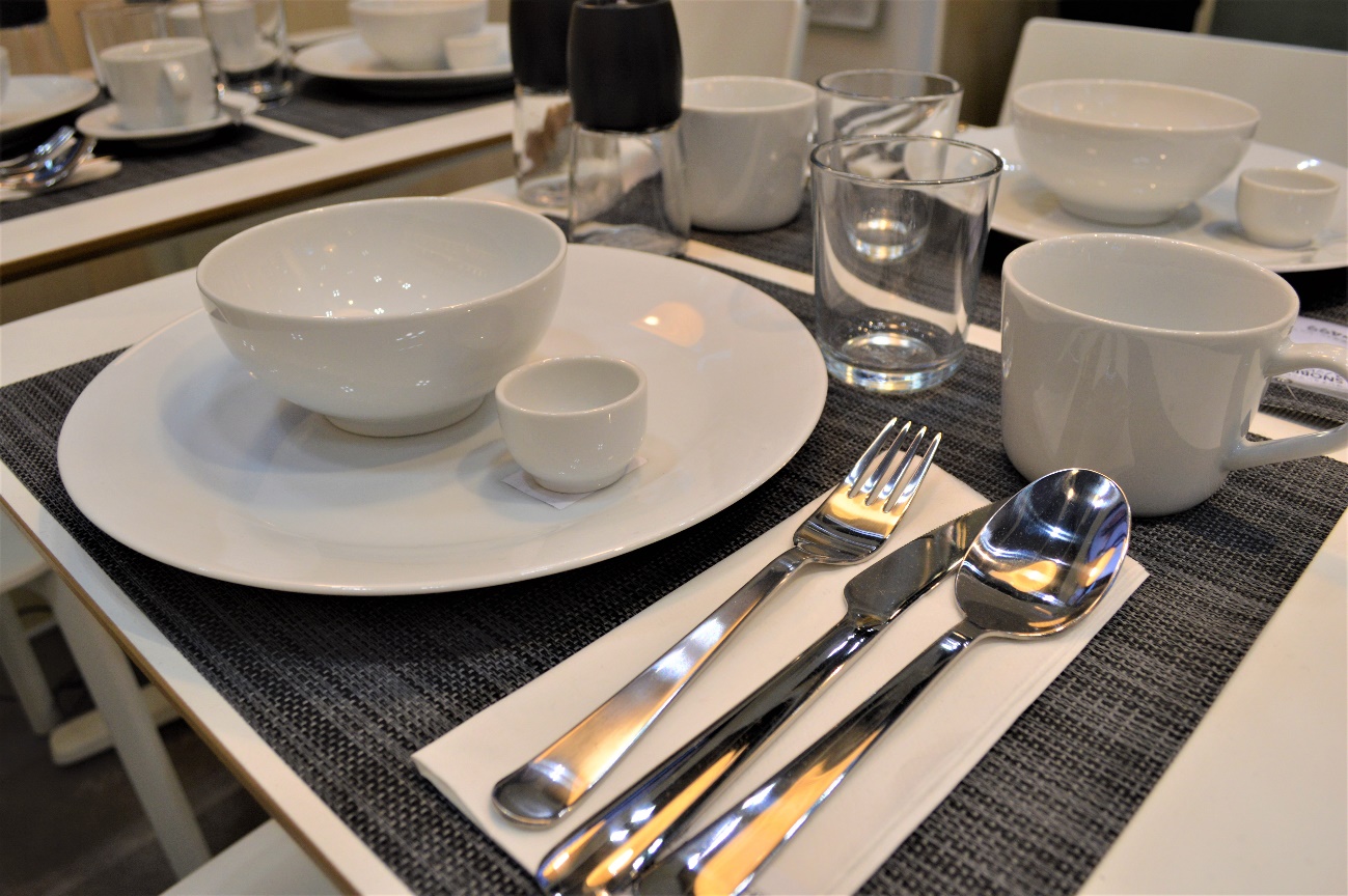 飲食店で重宝しそうなオールホワイトの食器の数々。