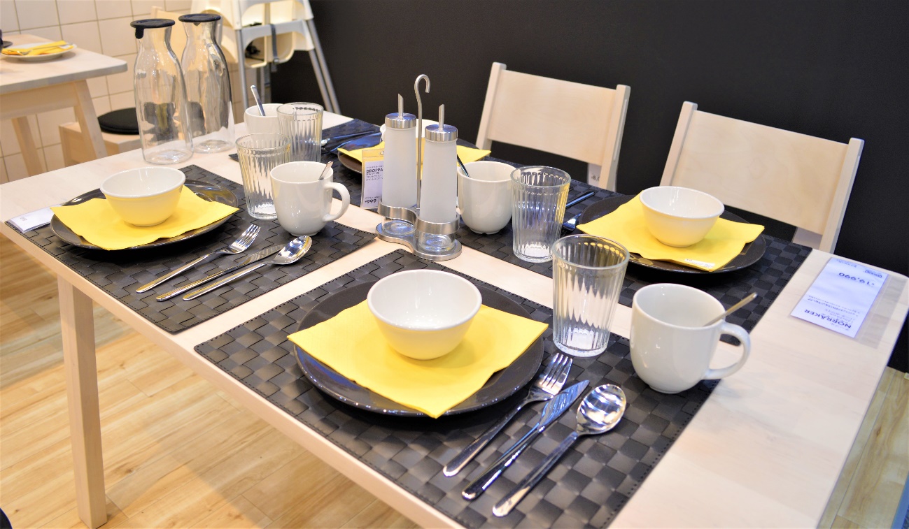 家具からカトラリーや雑貨まですべて、イケアの店舗で販売しているものを展示しています。ご家庭でももちろんご利用いただけます。