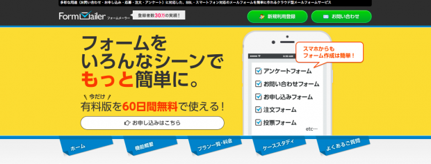 フォームメーラーは、お問い合わせだけでなく、アンケートやお申し込みフォームも無料で作成できるツールです。