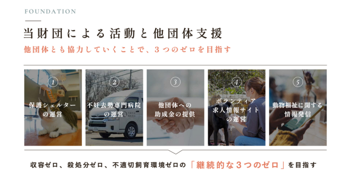 佐藤:「一般財団法人 犬猫生活福祉財団」の取り組みには大きく2つの軸があります。