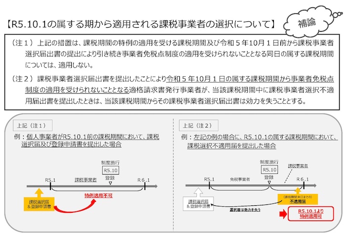 もし2割特例の適用を考えるのであれば、2023年10月1日の属する課税期間中に課税事業者選択不適用届出書を提出することで、対象になります。