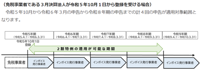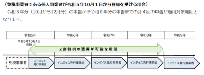 具体的には、必要な要件を満たしている個人事業主であれば、2023年10月から2026年12月末までの3年3カ月間、この特例措置を利用することができます。
