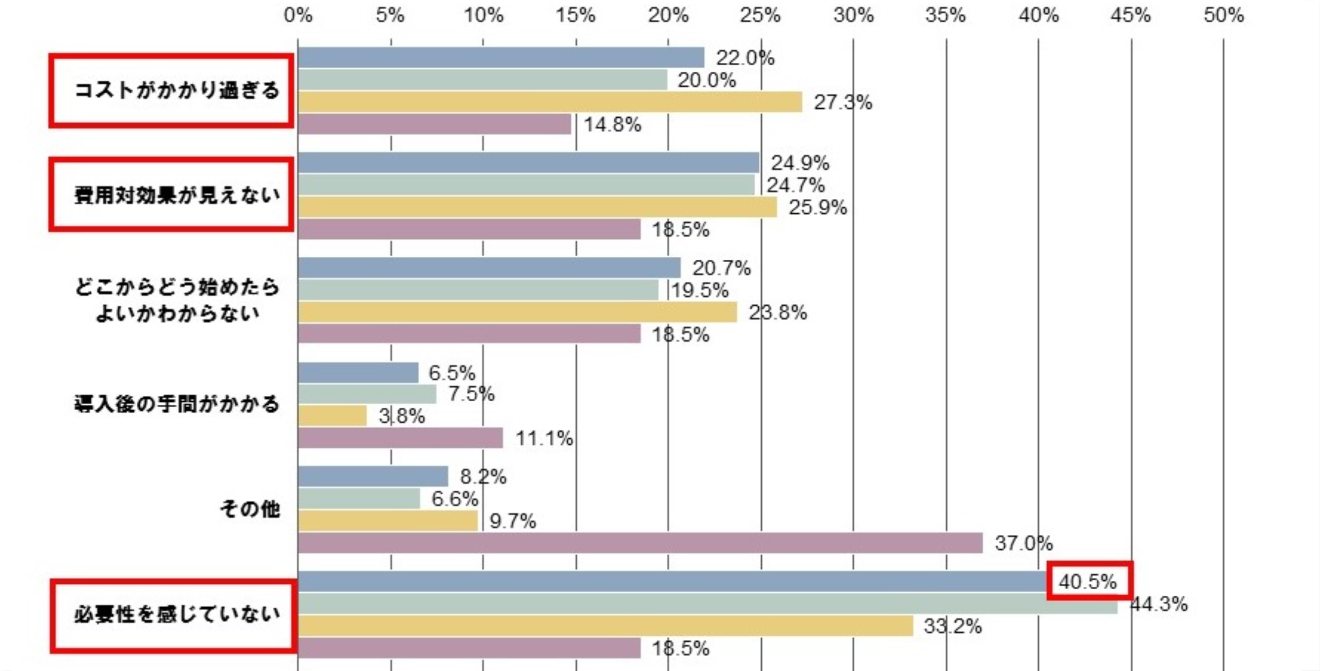 上述の通り、2022年3月時点で直近1ヶ月で約3割の企業がサイバー攻撃を受けているため、「必要性を感じていない」というのは認識不足です。また「費用対効果が見えない」との回答については、サイバー攻撃による損害を考慮すると、投資の価値は十分にあるでしょう。サイバー攻撃を受けると、業務が遅滞するばかりか、顧客や取引先からの信用を失ったり、大企業との間で訴訟問題になったりする恐れもあります。