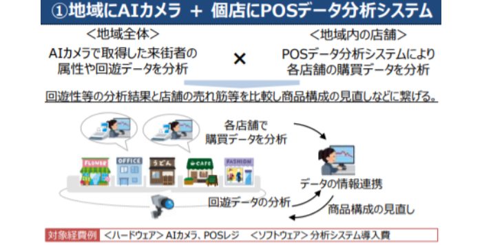 ①地域にAIカメラ + 個店にPOSデータ分析システム
