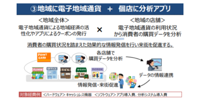 ●ITツール:消費動向分析システム、経営分析システム、需要予測システム、電子地域通貨システム、