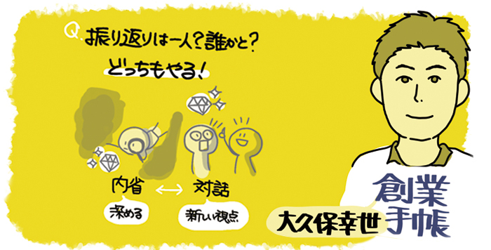 一方、深くふり返るには、ひとりでやる方がいいでしょう。どちらか片方ではなく、内省と対話、両方やるのが効果的です。