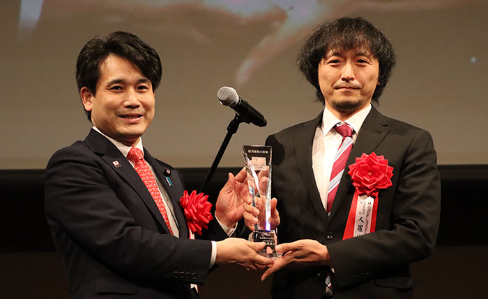 経済産業大臣賞は、株式会社FLOSFIA 代表取締役社長の人羅俊実氏が受賞しました!