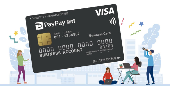 ビジネス用口座開設と同時に年会費無料のVisaデビット付キャッシュカードが使えます。