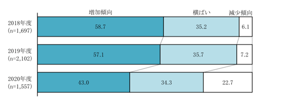 また、足元では新型コロナの影響もあり、売り上げに伸び悩む企業も増加。「売り上げが横ばい」もしくは「悪化」の企業が半数を超えています。