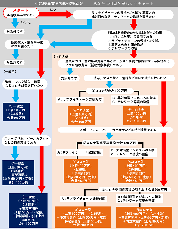 一般型とコロナ特別対応型に分かれるため、フローチャートを使って、ご自分に合った方を選択してみてください。