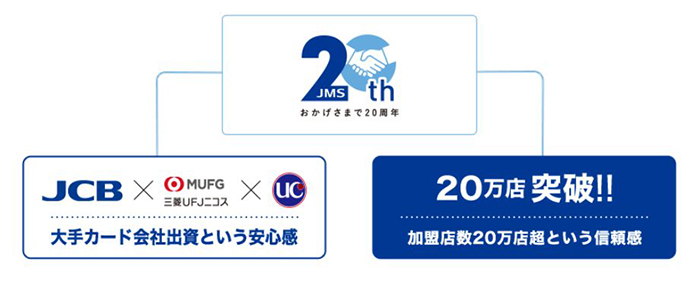 JCB、三菱UFJニコス、UCカードと国内大手カード会社の出資により設立、キャッシュレス決済を知り尽くした会社だからこそ、JMSはサポート体制に定評を得ています。