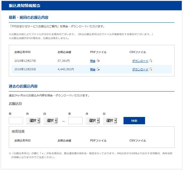 JMS WEBサービスにて、お振り込み内容の確認が可能!