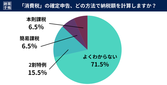 初の消費税確定申告が75%。消費税の計算方式については7割以上が「よくわからない」と回答