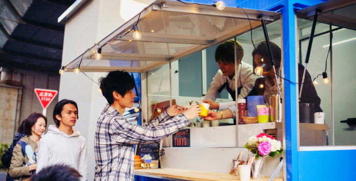 店舗や物件を借りるわけではないので、場所を制限されることなく、商品を提供できる飲食店形態です。