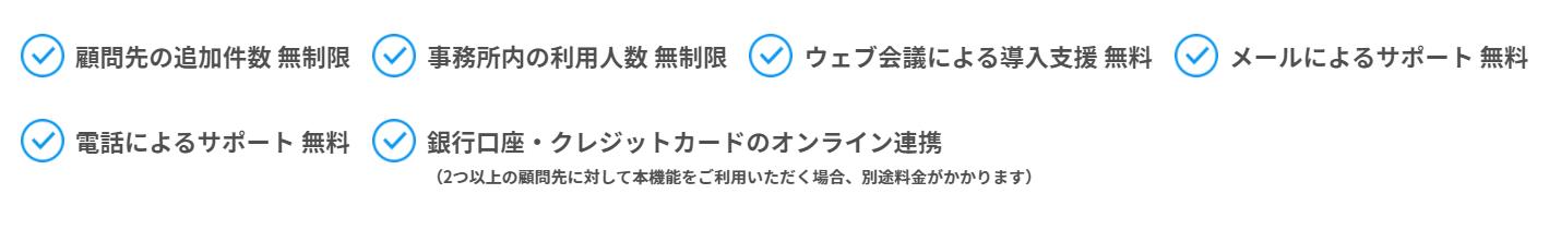 なお、銀行口座・クレジットカードのオンライン連携が可能ですが、2つ以上の顧問先に対して本機能を使用する場合は別途料金がかかります。
