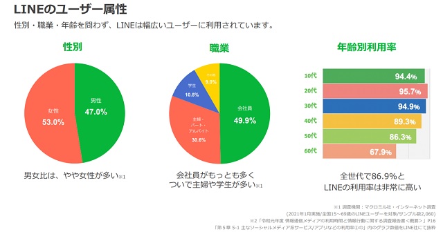 20代~30代の人の90%以上がLINEを使っていて、その人たちにリーチできるというのがLINE公式アカウントの強みです。