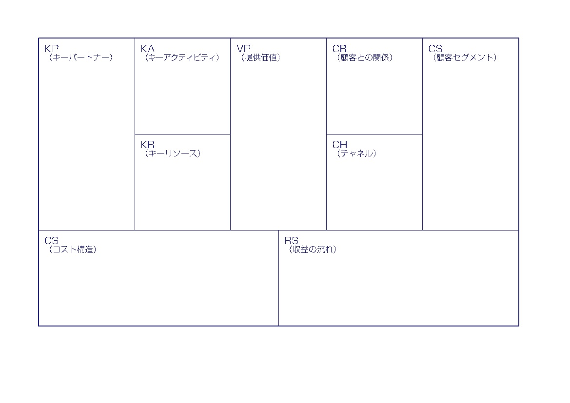 ビジネスモデルを決定するためには、ビジネスモデルキャンバスを用いることでヌケモレなく整理することが可能です。