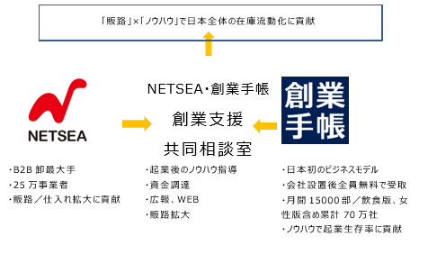 NETSEAと創業手帳が業務提携 B2B卸最大手と日本初の「会社の母子手帳」が利用事業者向けに無料の起業相談窓口を設置。 ~会員事業拡大支援と社会貢献を両立~