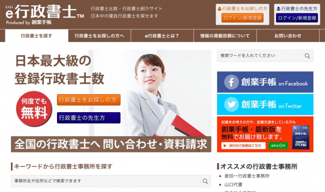 『創業手帳』が日本最大級の行政書士比較検索サイト『e行政書士』を開設