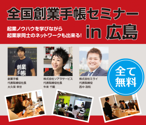【広島】創業手帳と株式会社ソアラサービスが共催の起業家向け無料セミナーを12月21日開催!
