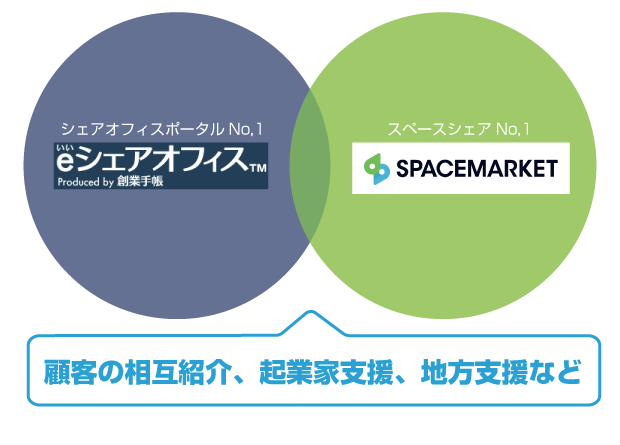 「スペースマーケット」と「eシェアオフィス」、「創業手帳」で連携し、顧客の相互紹介や、起業家支援、地方の支援などを推進していく予定です。