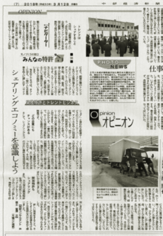 中部経済新聞にシェアリングエコノミーについて創業手帳の代表 大久保幸世のコメントが掲載されました