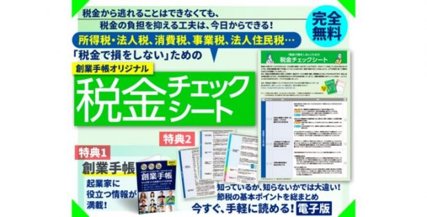 創業手帳オリジナルの『税金チェックシート』を発行、無料プレゼント