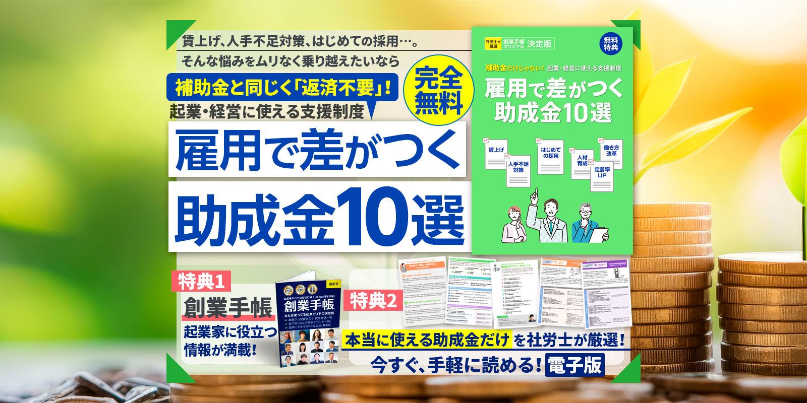 【社労士厳選】「人を雇うなんて、うちには無理」…を変える『雇用で差がつく助成金10選』を発行、無料プレゼント