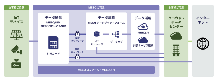 峯村:MEEQは、IoTやDXサービスを提供する事業者や、DXを検討している企業向けに通信回線(SIM)やデータ蓄積システムなどIoT・DXで必要とされる機能をワンストップで提供しているプラットフォームサービスです。注文や解約、プランの変更もプラットフォーム上で完結できますし、SIM1枚から発注可能なため気軽に導入できます。