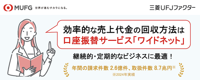 起業家・経営者におすすめなのは、三菱UFJファクターが提供する安全・安心の口座振替サービス「ワイドネット」です。