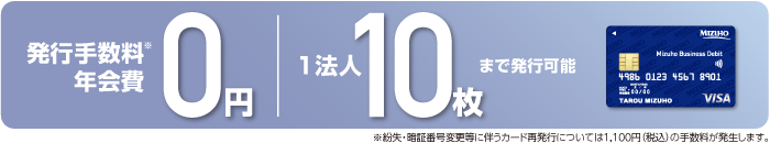 1枚目の発行手数料 すべての年会費0円!1法人10枚まで発行可能