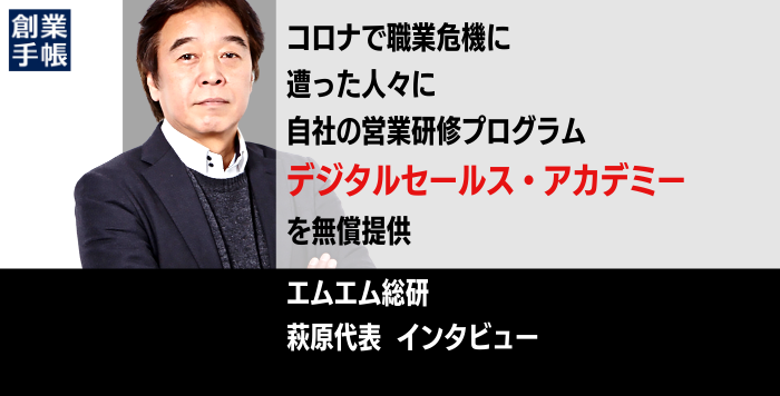 コロナで職業危機に遭った人々に自社のデジタル営業研修プログラム「デジタルセールス・アカデミー」を無償提供。エムエム総研の萩原社長にインタビュー