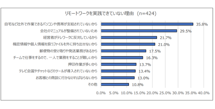 中山:先ほども触れたアンケートで、リモートワークを実践できていない理由として、皆さんが挙げられたのは以下の結果でした。