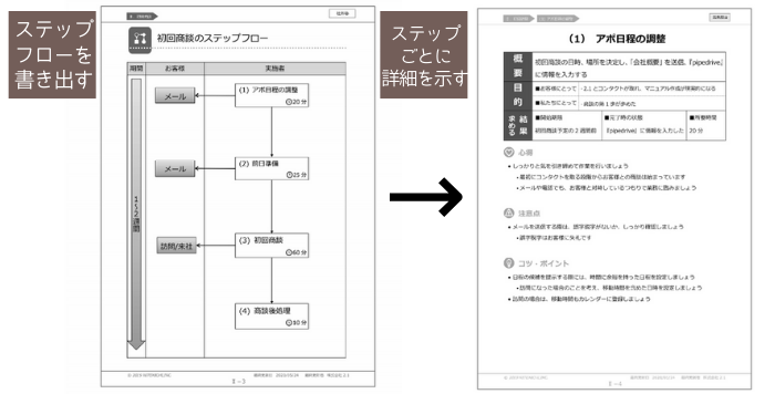 中山:はい。30人の新人が読んだら、30人が同じように業務を遂行できるよう、ひとつひとつのステップを深堀りして具体的に示すことが重要です。