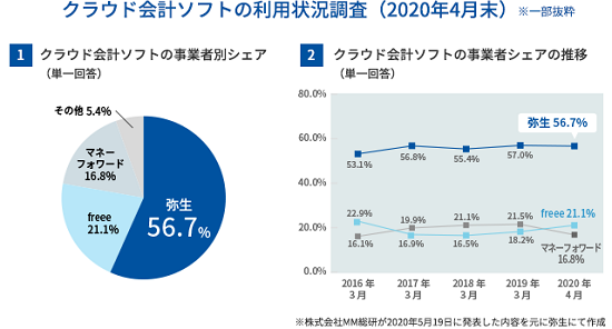 2020年5月29日、弥生株式会社は、個人事業主のクラウド会計ソフト市場におけるシェアNo.1を獲得したことを発表しました。
