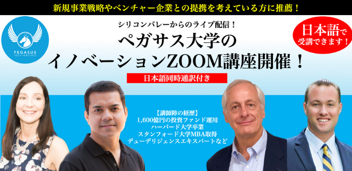 2021年4月27日アメリカのペガサス・テック・ベンチャーズが主催する「ペガサス大学」の大企業向けZOOM講座が日本で開催