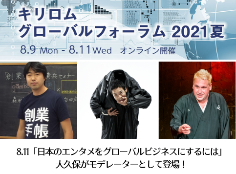 2021年7月26日 注目のニュース「キリロムグローバルフォーラム【2021年夏】」に創業手帳・大久保がモデレーターとして登壇