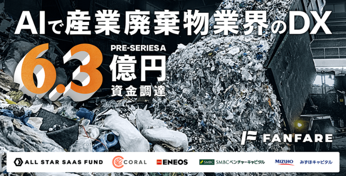 2022年7月20日産業廃棄物業界に特化した配車管理SaaS「配車頭」を提供する「ファンファーレ」が6.3億円調達