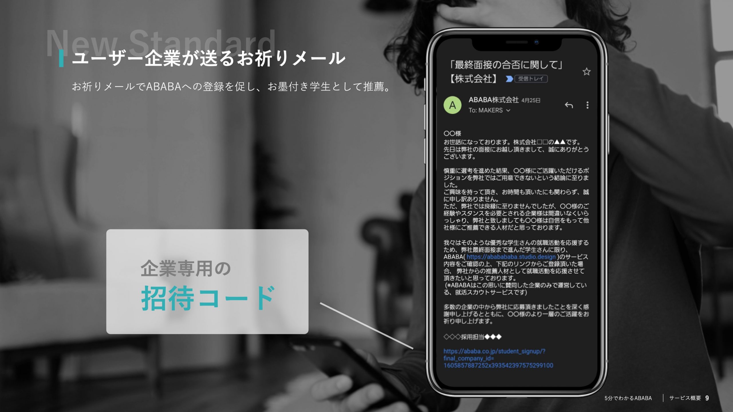 ABABAの理念の中に「隣人を助けよ、自分ごとであれ」というものがあります。今回のABABAも友人が最終面接で落ちたという小さな困りごとがスタートさせましたが背景には大きな社会課題がありました。周りの人の困り事解決はやがて大きな社会課題解決に繋がると思いますので、今後も隣人に寄り添える企業・サービスで在りたいと思っております。