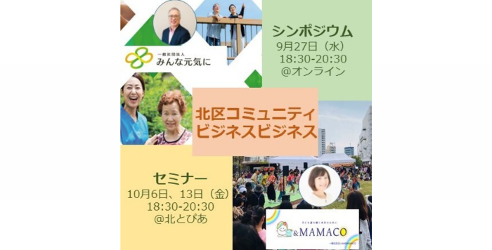 2023年9月8日 注目のニュース【9/27(水) 、10/6・13(金)】北区にてコミュニティビジネス シンポジウム・セミナーをハイブリッド開催
