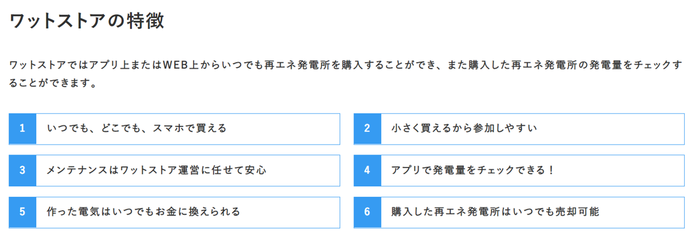 | サービス名 | スマホで買える再エネ発電所「ワットストア」 |