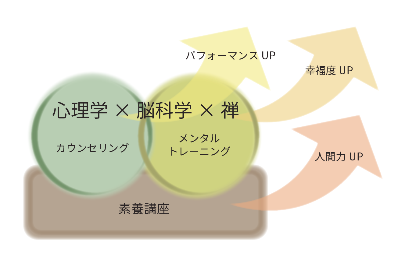 そして、「素養」を兼ね備えた人財を増やしていくために、心理セラピスト養成講座や禅の教えをベースに絶対成幸者になるための奥義をお伝えする人間力養成講座を開講します。
