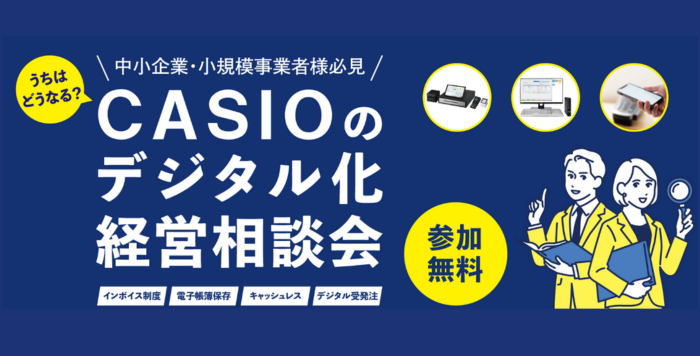 いよいよ2023年10月1日に制度開始となるインボイス制度や、来年から本格的に施行開始となる電子帳簿保存法など、各種法改正に対応したCASIO製システム製品や、今や日常生活において当たり前の決済方法となったキャッシュレスソリューションをまとめた展示会を開催します。