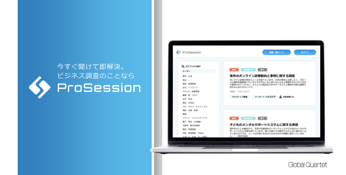 ビジネス調査を手助けするナレッジシェアプラットフォーム「ProSession」で注目なのが、城みのりさんが2018年に創業した株式会社グローバル・カルテットです。