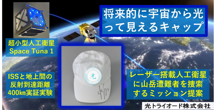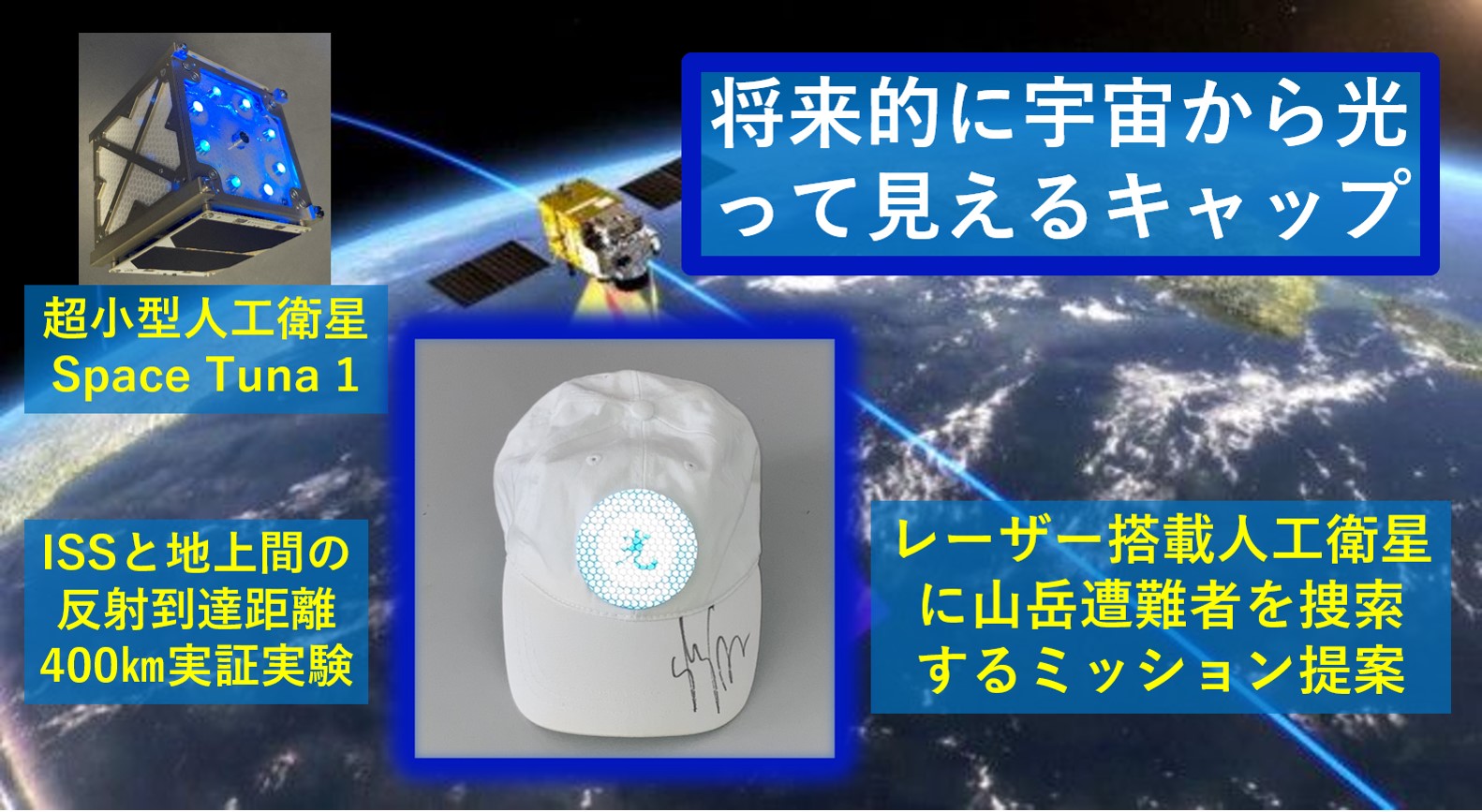 我々は近い将来「宇宙から山岳遭難者や迷子を捜索する」ミッション要求を、スカパーJSAT株式会社が打ち上げを計画しているレーザー搭載人工衛星に提案させていただきたいと考えています。そのために「Makuake」のクラウドファンディングでは、「宇宙から光って見えるキャップ」を応援購入していただいた方には、ミッション要求をする仲間としての会員証を発行しています。