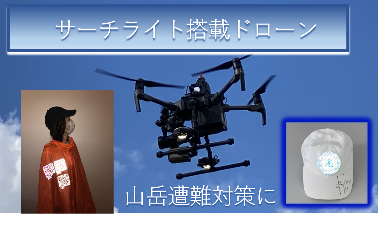 この「宇宙から光って見えるキャップ」をかぶっていれば、将来的に宇宙から捜索することが可能になります。また、ミッション提案が採択された暁には、みんなでキャップをかぶって宇宙実験に参加することができます。尚、現状でもサーチライト搭載ドローンによって、捜索することは可能です。