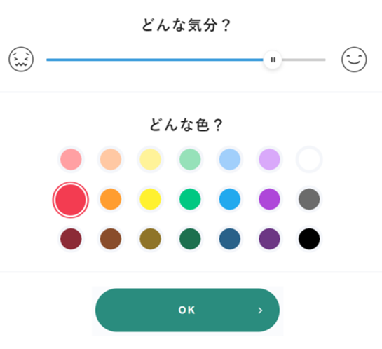 毎朝アプリを開き、まず「今日の気分」の状態を、バーの上でスライドして示すのが、1ステップ目です。