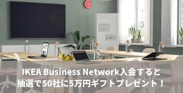 イケアでは、入会費・年会費が無料のIKEA Business Networkに入会すると、毎月抽選で50社さまに5万円のデジタルギフトカードをプレゼントするキャンペーンを実施しています。
