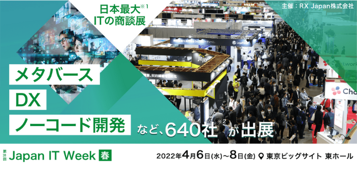 2022年4月6日(水)~8日(金)の3日間、RX Japan株式会社(旧社名: リード エグジビション ジャパン)が主催する「第31回 Japan IT Week 【春】」が東京ビッグサイト 東ホールで開催されます。