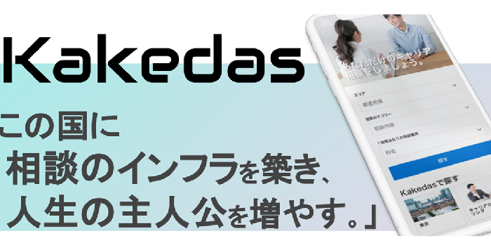 オンラインカウンセリングプラットフォームの事業開発で注目なのが、渋川駿伍さんが2018年に創業した株式会社Kakedasです。